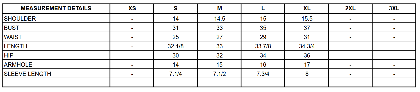 Size Chart: